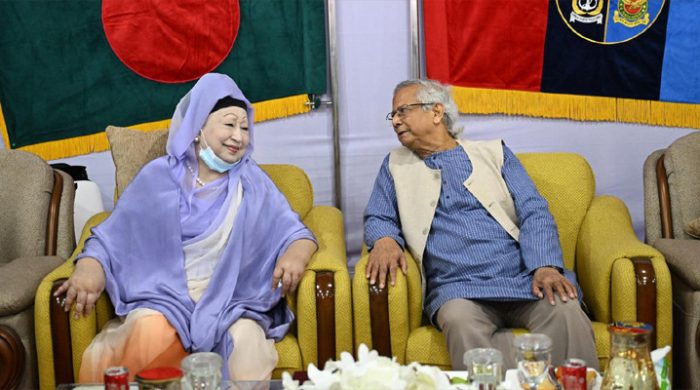 সেনাকুঞ্জে প্রধান উপদেষ্টা প্রফেসর মুহাম্মদ ইউনূস ও বিএনপি চেয়ারপারসন খালেদা জিয়া পারস্পরিক সৌজন্য বিনিময় করেছেন। আজ শুক্রবার (২১ নভেম্বর) সেনানিবাসে সশস্ত্র বাহিনী দিবস উপলক্ষে আয়োজিত অনুষ্ঠানের সাইডলাইনে তাদের এ