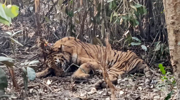 সুন্দরবনে চোরা হরিণ শিকারিদের ফাঁদে আটকে পড়া বাঘটিকে উদ্ধার করেছে বনবিভাগের বিশেষজ্ঞ দল। বাঘটি খাঁচায় বন্দি করে খুলনায় নেওয়া হচ্ছে। এর আগে ‘ট্রানকুইলাইজার গান’ দিয়ে ইনজেকশন পুশ করে অচেতন